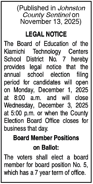 Locally owned and operated weekly newspaper serving the residents of Tishomingo and Johnston County, Oklahoma.